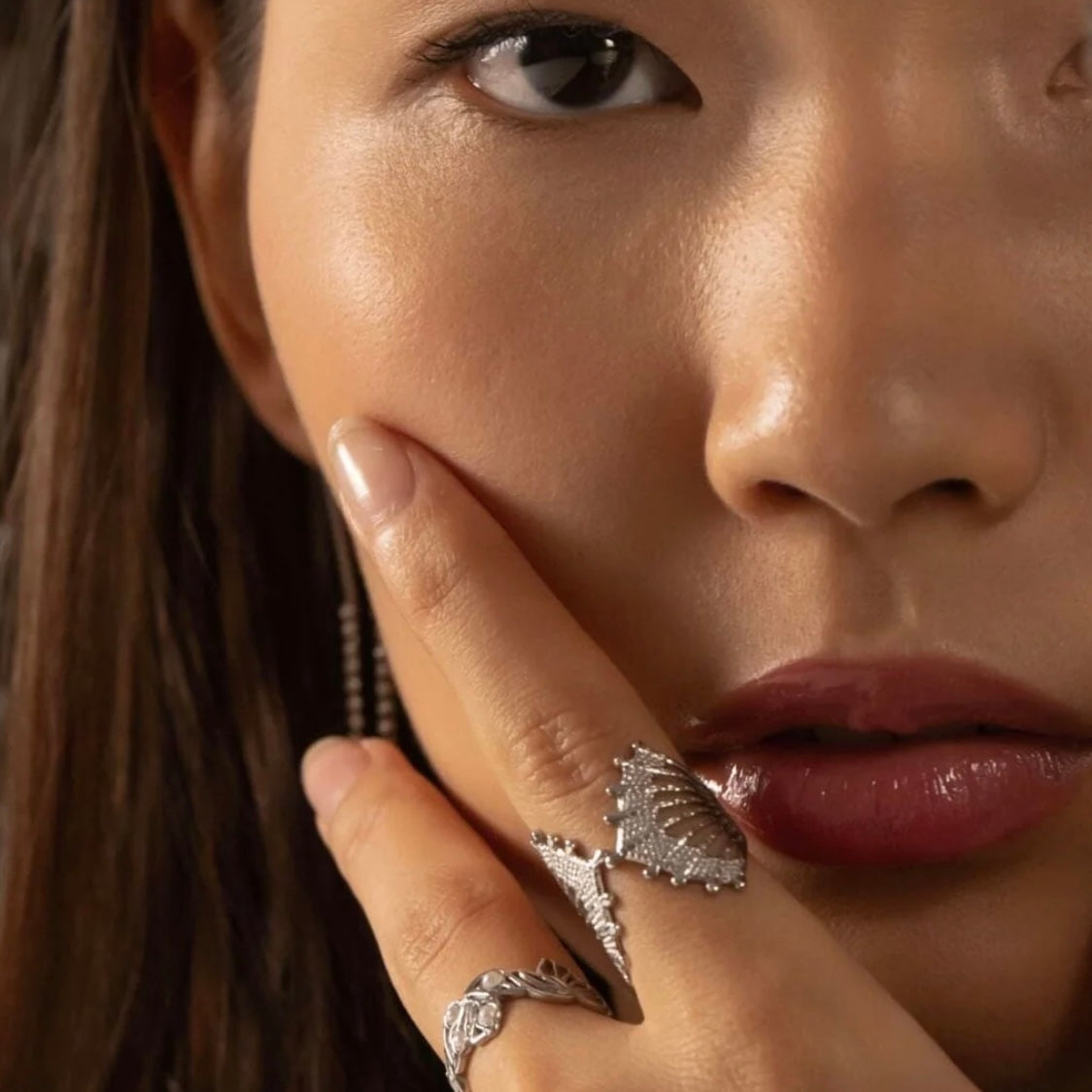 - Anello regolabile lavorazione bassorilievo con micropalline che formano un ventaglio