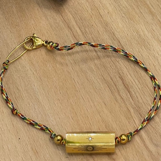 - Bracciale a filo colorato con esagono di metallo