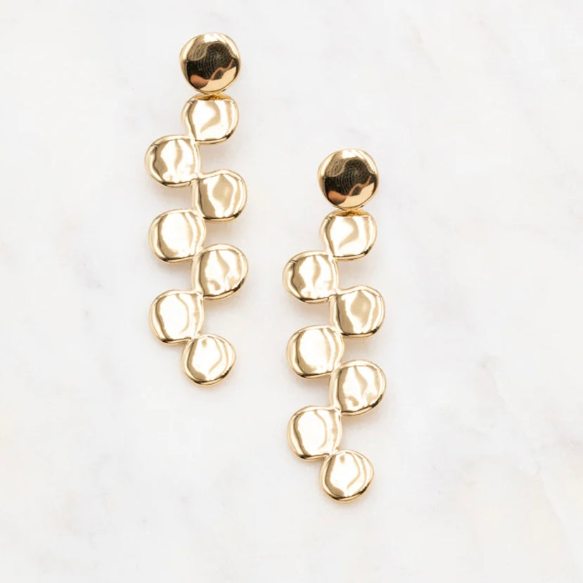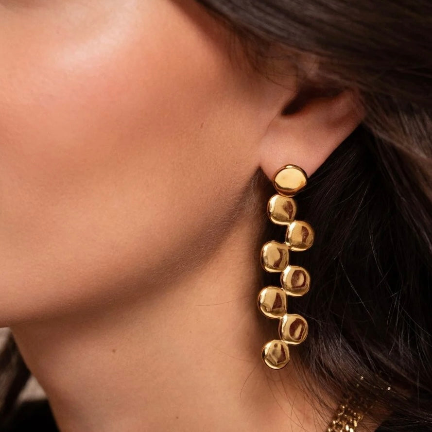 - Orecchino lungo con pois sfalsati da entrambi i lati