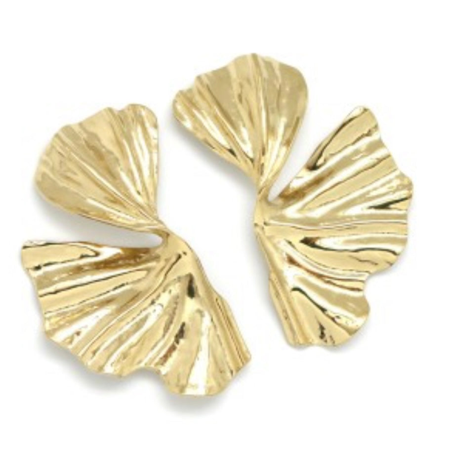 - Orecchino medio grande in acciaio placcato oro a forma insolita mossa